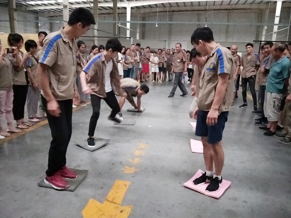 隨著一聲“比賽開始”的口令,大家熱情高漲,隊員們齊心協力,奮力拼搏,有些隊剛開始有點緊張,所走路線成彎曲狀,后來,在大家從旁提醒,順利到達終點。有些隊吸取經驗,通過簡單的交流和溝通戰略技巧,比較順利。相比而言,后面的組明顯比前面的組速度快。在整個比賽過程中,里料車間團隊協作的能力和靈活的戰術配合比較好,本著“友誼第一、比賽第二”的精神,經過激烈角逐,里料車間以2分25秒完成了60米“搭橋過河”獲比賽第一名,包裝車間獲得第二名,技術部獲得第三名。
