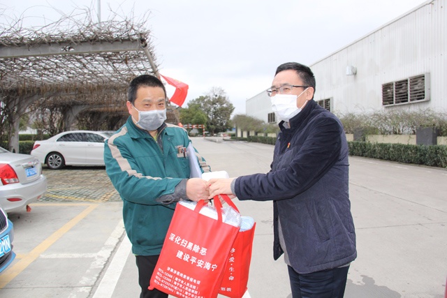 當(dāng)前,抗擊新冠肺炎疫情正處于關(guān)鍵時刻,各家企業(yè)陸續(xù)迎來復(fù)工復(fù)產(chǎn)。2月15日,斜橋鎮(zhèn)黨委書記洪國清和黨委委員、副鎮(zhèn)長潘曉國專程到我集團(tuán)股份二區(qū)工廠慰問調(diào)研,了解企業(yè)的開復(fù)工情況和碰到的一些問題,送上了1000只醫(yī)用口罩和2把測溫儀。